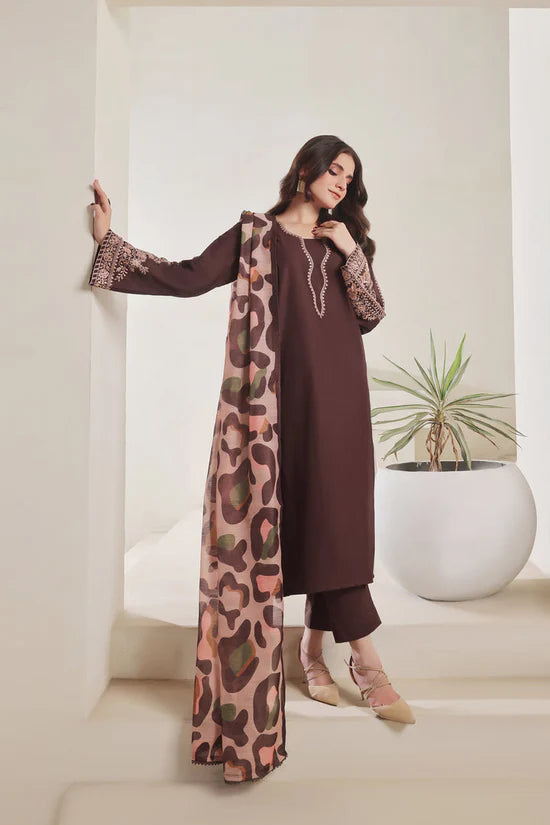 WINTER-3PC DHANAK EMBROIDERED SHIRT WITH COURTRAI PRINTED SHAWL AND TROUSER-4277