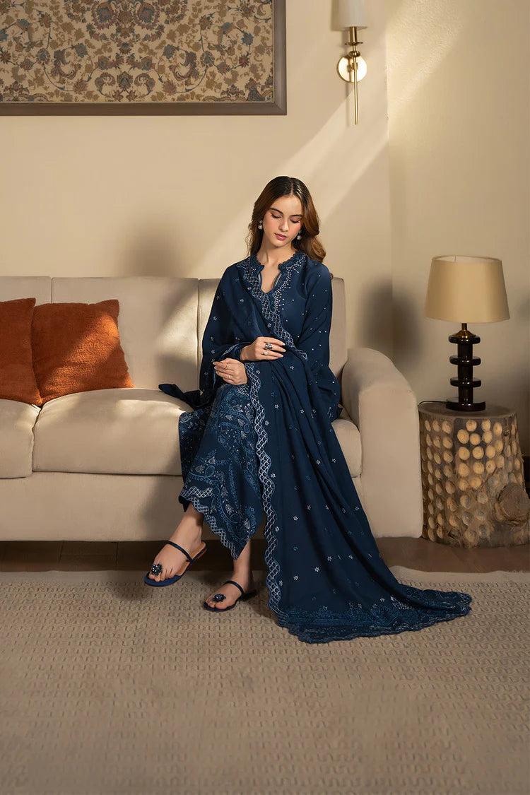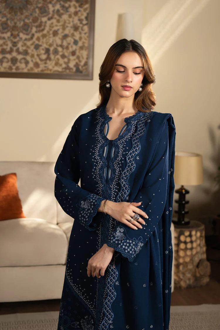 WINTER-3PC DHANAK EMBROIDERED SHIRT WITH DHANAK EMBROIDERED SHAWL AND TROUSER-4392