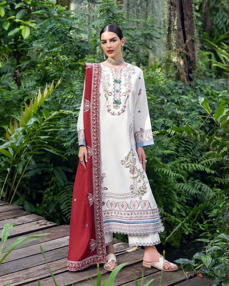 WINTER-3PC DHANAK EMBROIDERED SHIRT WITH DHANAK EMBROIDERED SHAWL AND TROUSER-4418