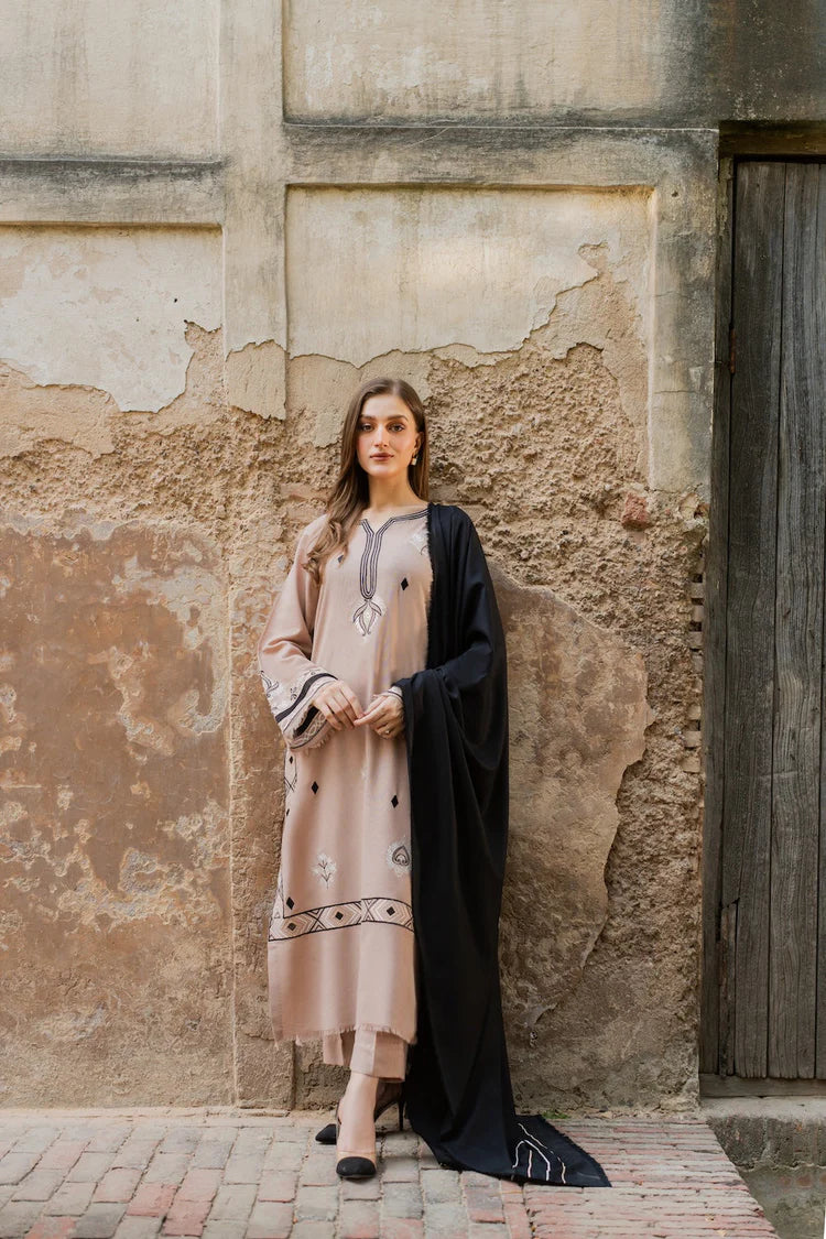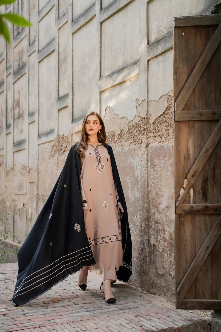 WINTER-3PC DHANAK EMBROIDERED SHIRT WITH DHANAK EMBROIDERED SHAWL AND TROUSER-4421