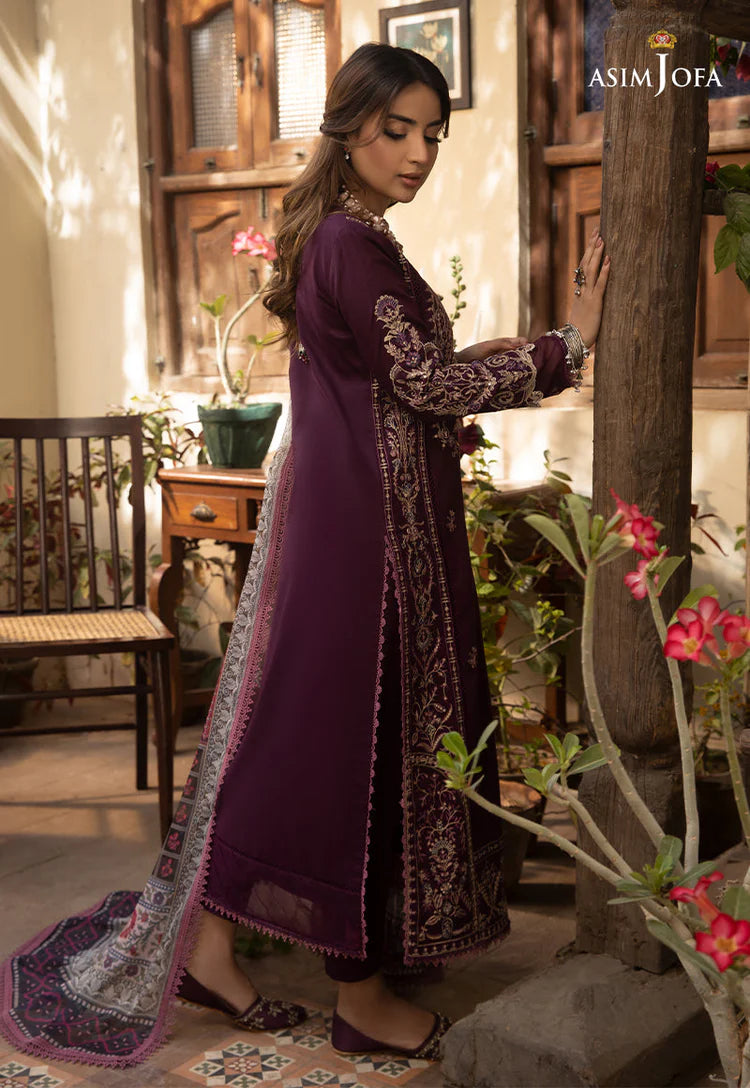 WINTER-3PC DHANAK EMBROIDRED SHIRT WITH COURTRAI PRINTED SHAWL AND TROUSER-4252