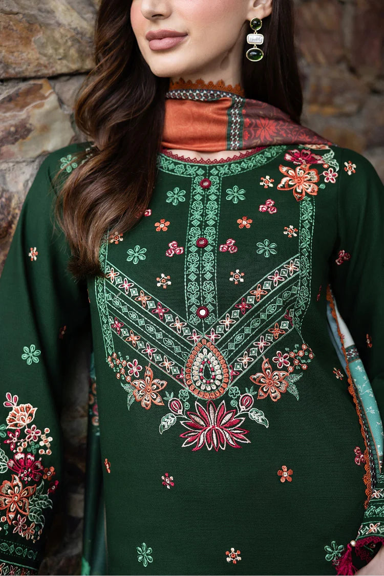 WINTER-3PC KHADDAR EMBROIDERED SHIRT WITH COURTRAI PRINTED SHAWL AND TROUSER-4419