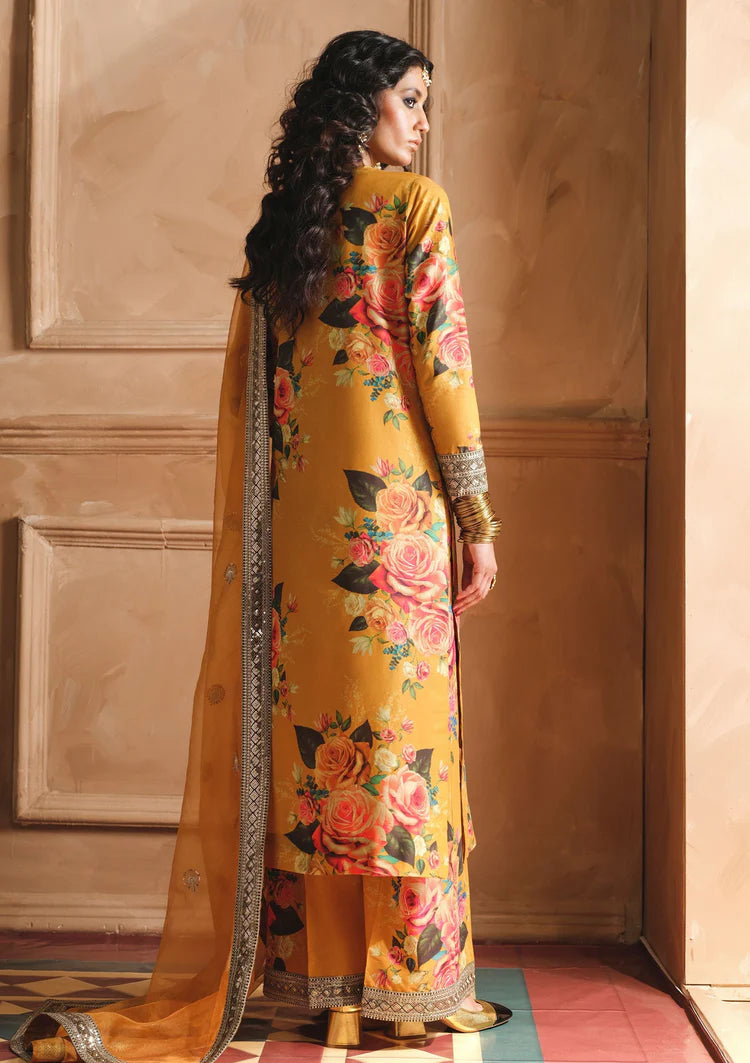 WINTER-3PC SHAMOZE SILK PRINTED EMBROIDERED SHIRT WITH SOFT SILK PRINTED EMB DUPATTA & EMB TROUSER-1726
